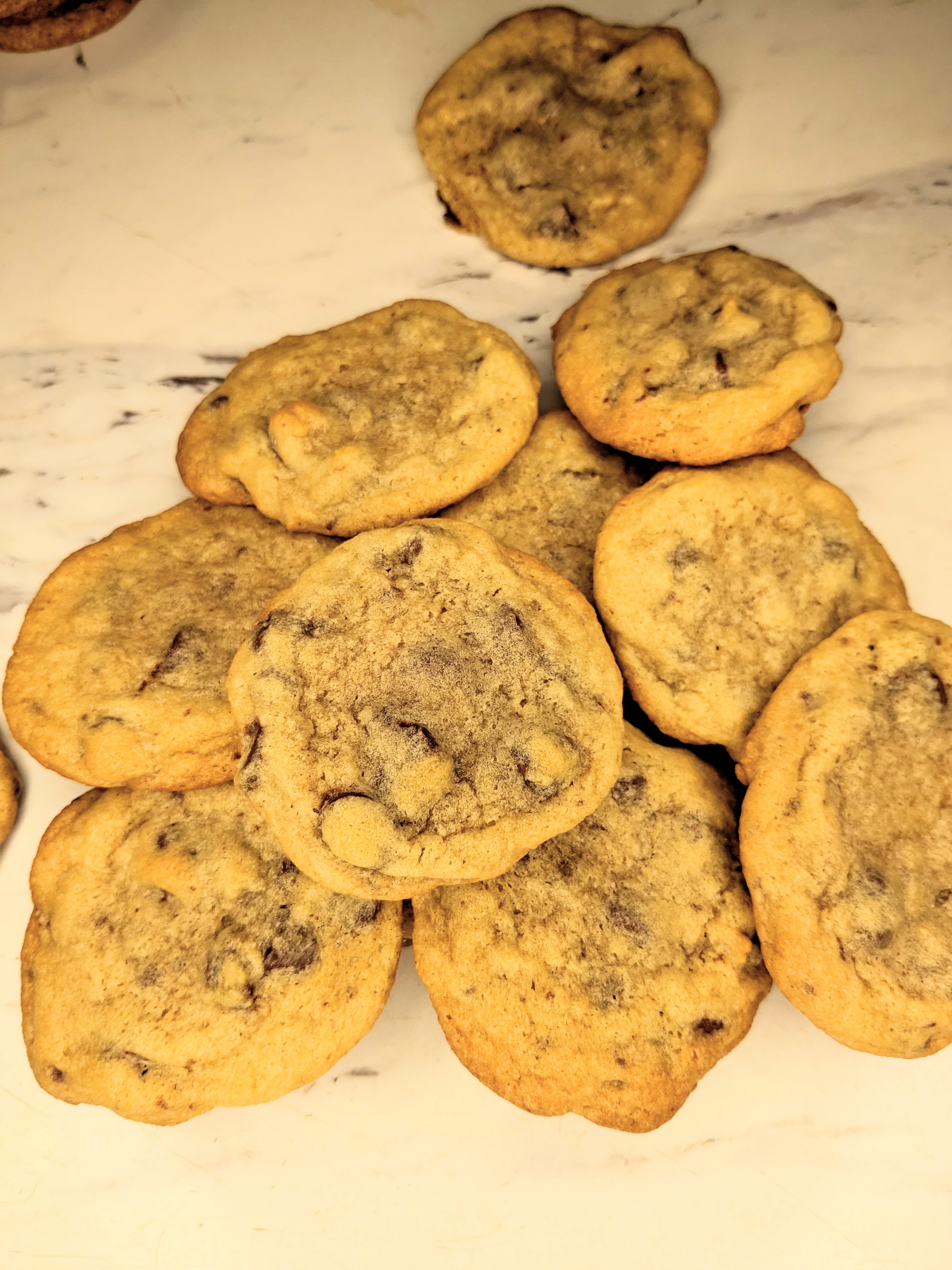 Now, If you want a chewy chocolate chip cookie, you absolutely can not over mix the dough, and you need to underbake them just slightly. I will always pull them out a minute or two under the minimum bake time and cool immediately. I love when it’s cold out and I can just put them outside to cool down.