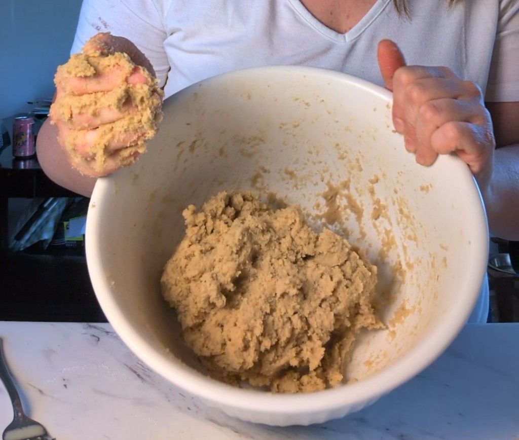 Because then something happens. You start kneading and the gluten develops and the whole thing transforms. It gets stiff. Almost heavy in your hands. Elastic in a way that almond flour dough has absolutely no right to be. It holds together. It shapes. It becomes something you can actually work with.