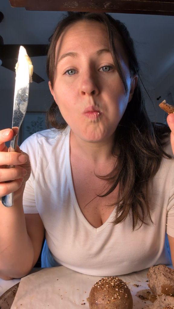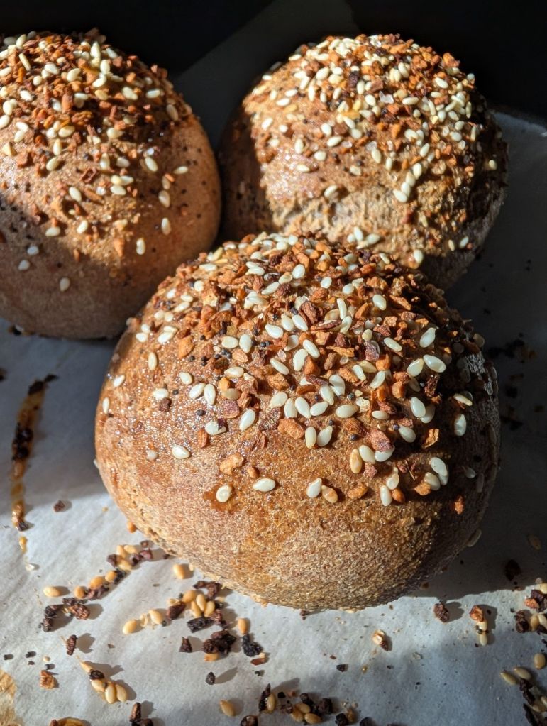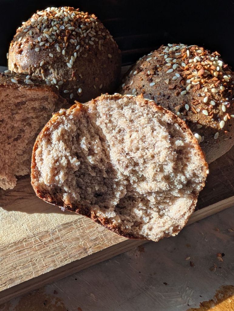 These are not a light fluffy kaiser roll. I want to be straight with you about that because I went in expecting one thing and got another and the adjustment took about thirty seconds. What they are is a dense, chewy, flavourful roll with a genuinely satisfying bite that holds up to whatever you put in it. Burger. Sandwich. Eaten warm straight from the oven with butter while standing at the counter seven months postpartum choosing yourself again.