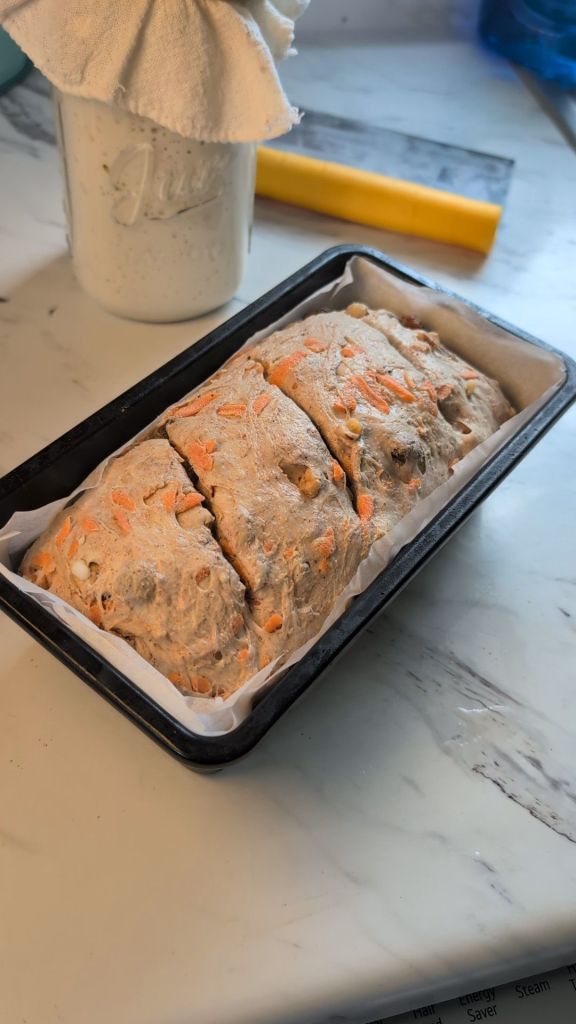 Not tired in a dramatic way. Just tired of making the same loaf the same way and getting the same result. The carrot cake sourdough has always been a good loaf. Reliable. Crowd pleasing. The kind of thing you bring to Easter dinner and people ask for the recipe.